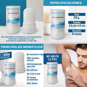 – No testeado en animales, Vegano, 100% natural, sin aluminio, sin alcohol, envase 100% reciclable.